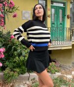 3173-Striped Crewneck Long Sleeve Knit Sweater