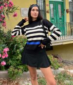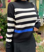 3172-Striped Mockneck Long Sleeve Knit Sweater