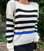3173-Striped Crewneck Long Sleeve Knit Sweater