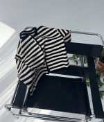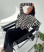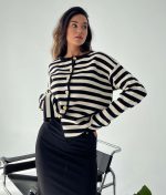 3174-Long Sleeve Striped Crewneck Knit Cardigan