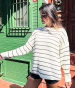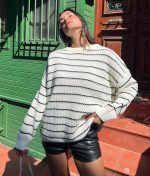 4621-Striped Thessaloniki Crewneck Knit Sweater