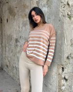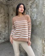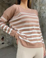 5821-Striped Long Sleeve Oversize Crewneck Knit Sweater