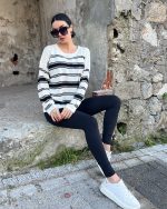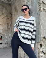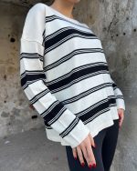 5823-Striped Oversize Crewneck Knit Sweater